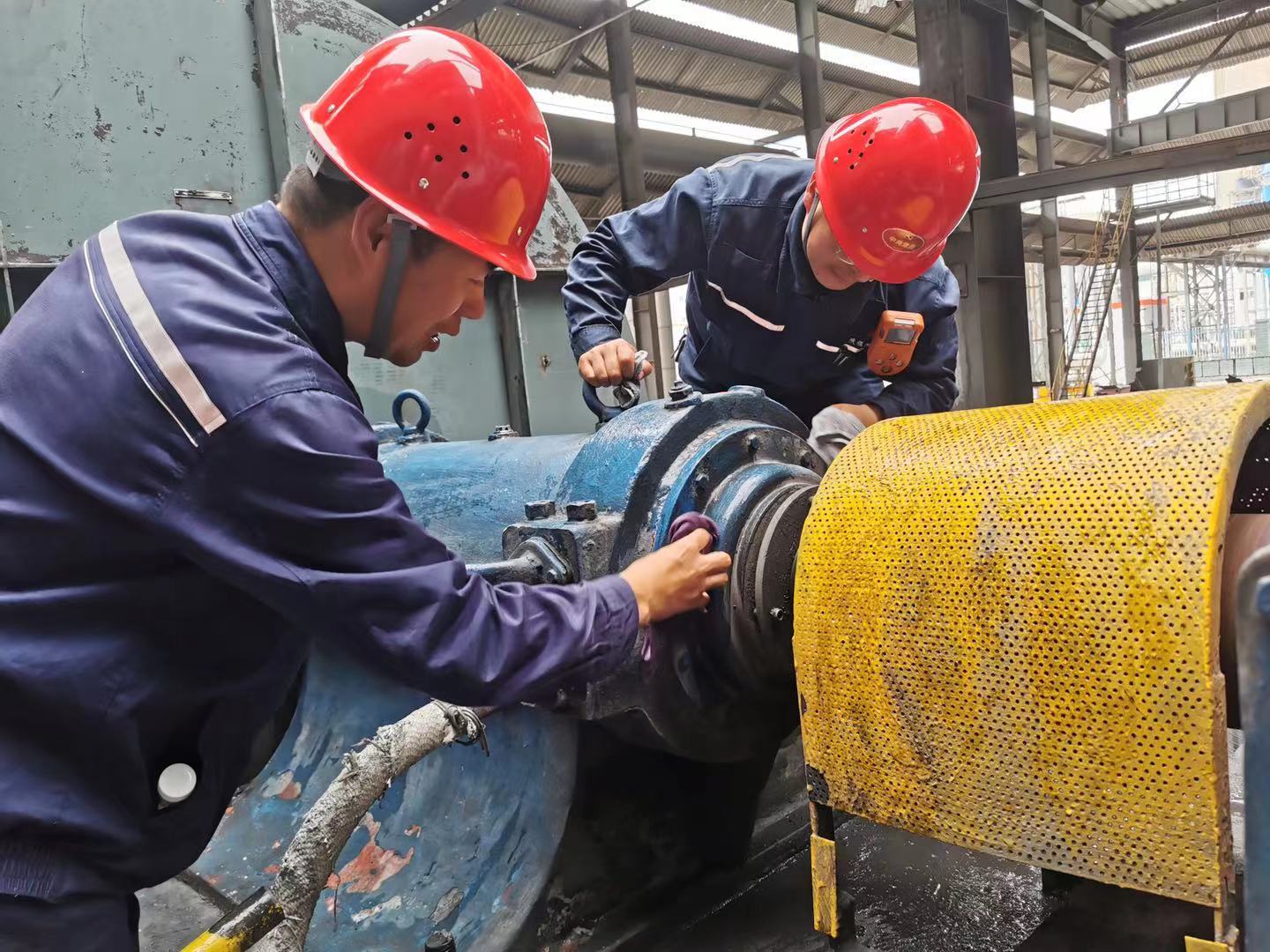 2~3小時(shí)的周檢查結(jié)束后,檢查組成員走近各自包機(jī)設(shè)備,在現(xiàn)場(chǎng)作業(yè)人員的配合下,對(duì)設(shè)備進(jìn)行清理和擦洗,從領(lǐng)導(dǎo)班子成員到中層管理人員,人人都變成設(shè)備的“守護(hù)神”。在該公司6號(hào)電石爐的一臺(tái)凈化風(fēng)機(jī)旁,副總經(jīng)理惠曉鵬手持壓力水管對(duì)風(fēng)機(jī)設(shè)備進(jìn)行沖洗降溫,方新軍爬上檢查樓梯擦拭電機(jī),后勤管理服務(wù)部部長(zhǎng)劉子廷緊隨其后擦拭風(fēng)扇防護(hù)罩。“一方面通過(guò)和設(shè)備進(jìn)行’親密接觸’,很容易發(fā)現(xiàn)設(shè)備的一些不良現(xiàn)象,如滴漏油、螺絲松動(dòng)、電線發(fā)黃等等;同時(shí),干凈整潔的工作環(huán)境,職工工作起來(lái)也會(huì)心情舒暢,有干勁,從而改善職工精神面貌。”方新軍一邊擦拭設(shè)備一邊說(shuō)到。